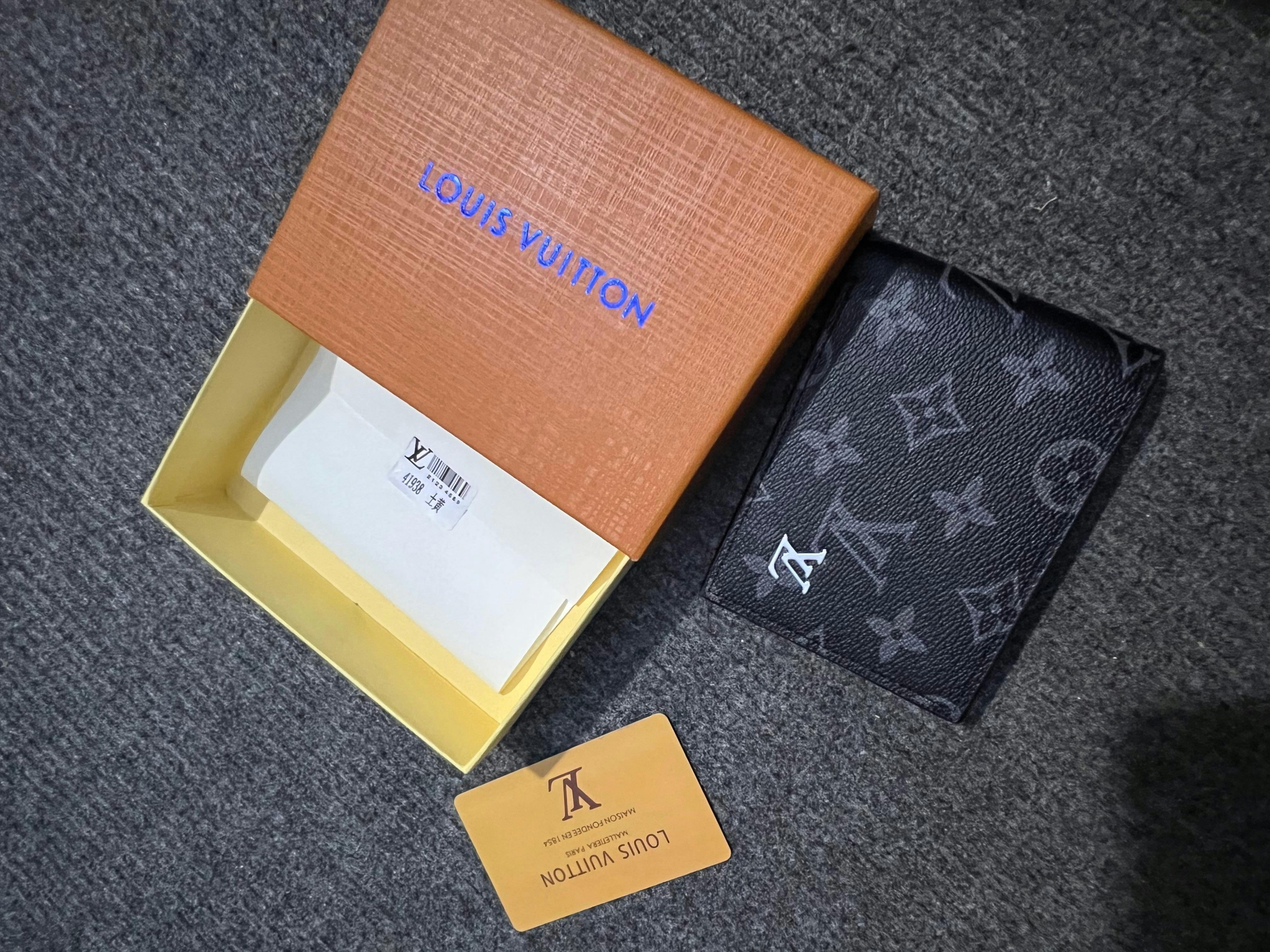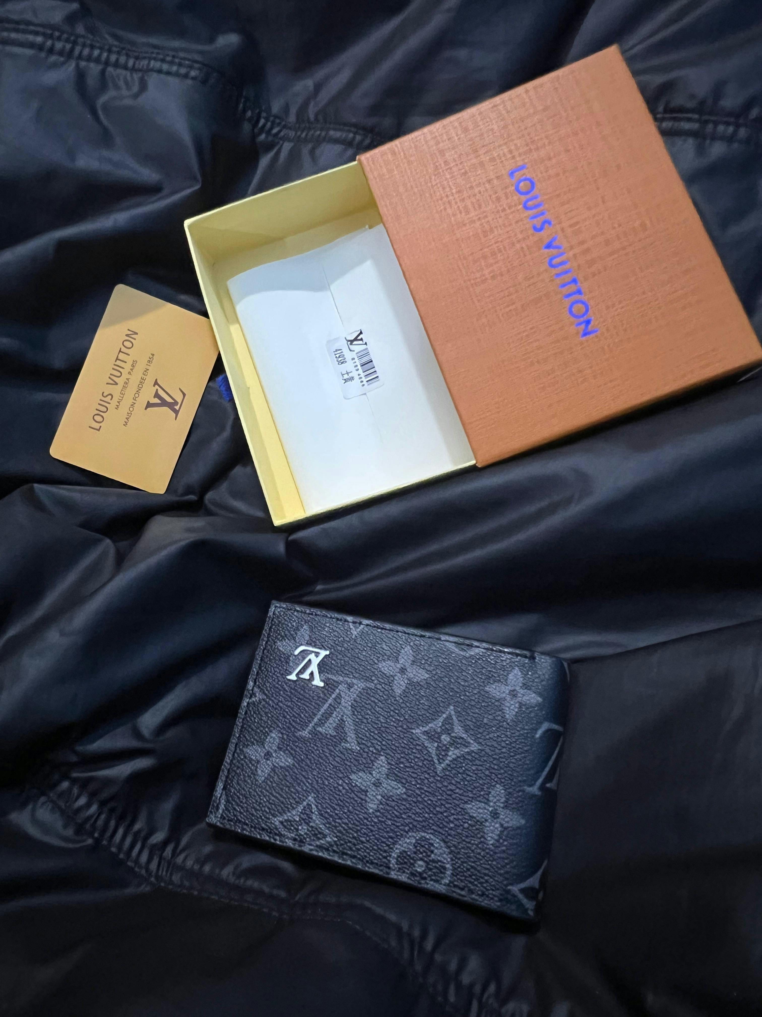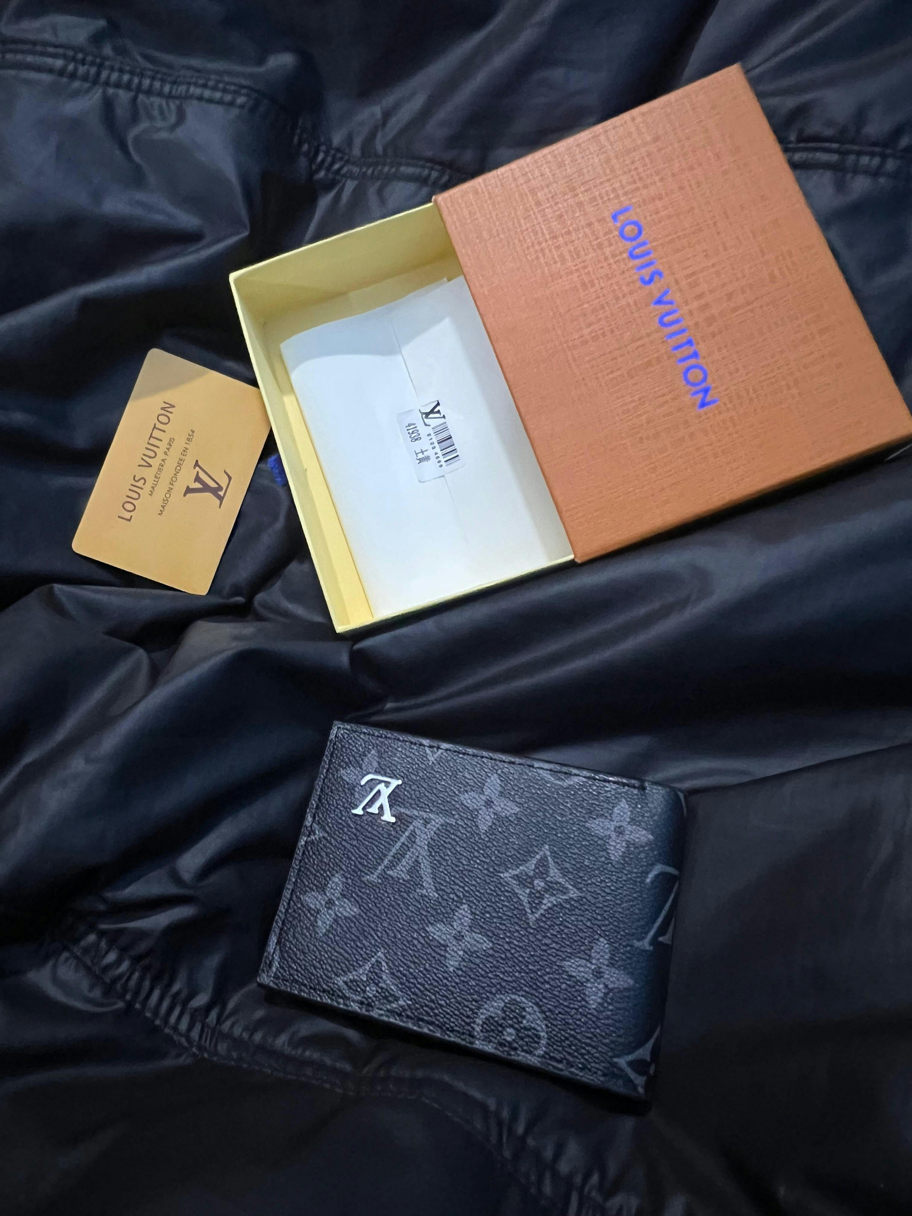 Crafted in Italy from premium textured genuine leather, this wallet features a sleek jet-black finish that pairs effortlessly with both formal and casual styles. The design is enhanced with the signature Louis Vuitton branding, representing timeless luxury and meticulous craftsmanship.